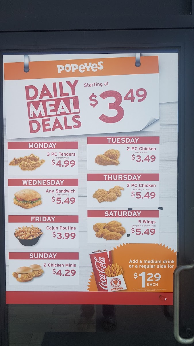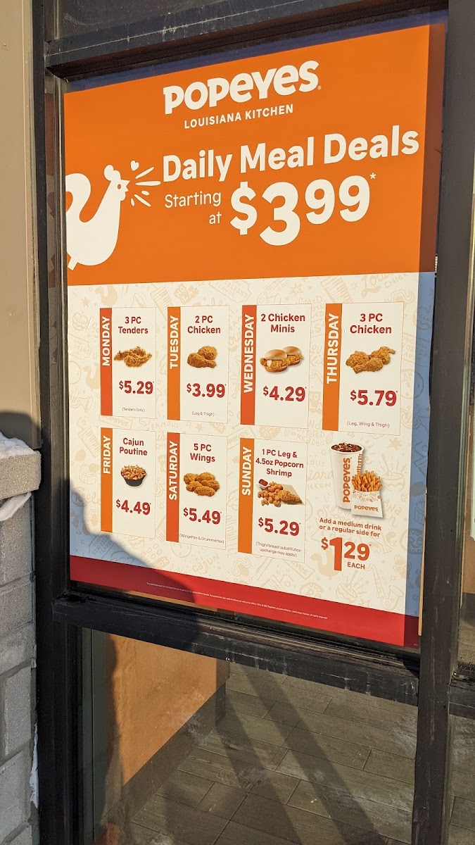 Popeyes is always a good chicken choice. I usually go with the tenders, and Cajun fries, the spicy is worth it, if you like spice. The Cajun poutine and red beans and rice, are also solid side choices. Tried the popcorn shrimp this time, and was quite impressed. If they add the spicy for the shrimp as well would be great